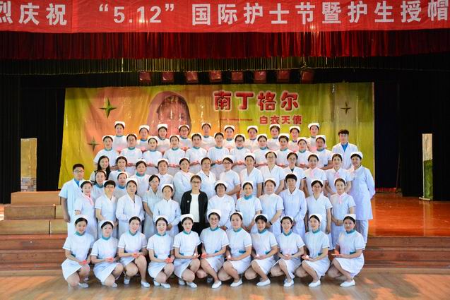 5月10日,护理系5.12国际护士节授帽仪式在学校大学生活动中心举行。第四十届南丁格尔奖获得者刘振华及相关人员参加了活动。